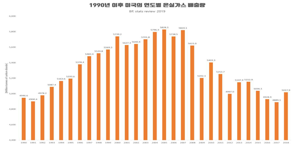 ▶ 미국도 온실가스 배출량이 감소 추세인데, 수송 등에서 발생하는 온실가스 배출량을 감축해야하는 상황이라 전기차 등 친환경차 보급 등이 중요한 이슈임.