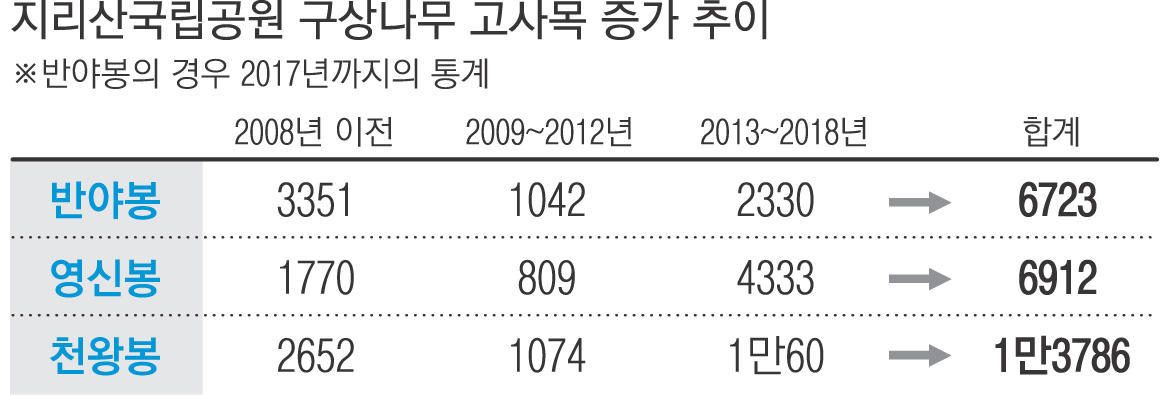 2. 사철 검푸르던 지리산의 ‘회색 탈모’…그 자리를 활엽수들이 차지 (2020.06.29)