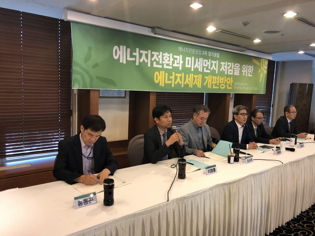 사단법인 에너지전환포럼은 6월 18일 오후 2시반, 프레스 센터 18층에서 ‘에너지전환과 미세먼지 저감을 위한 에너지세제 개편방안’이라는 내용으로 3차 정기포럼을 열었다.