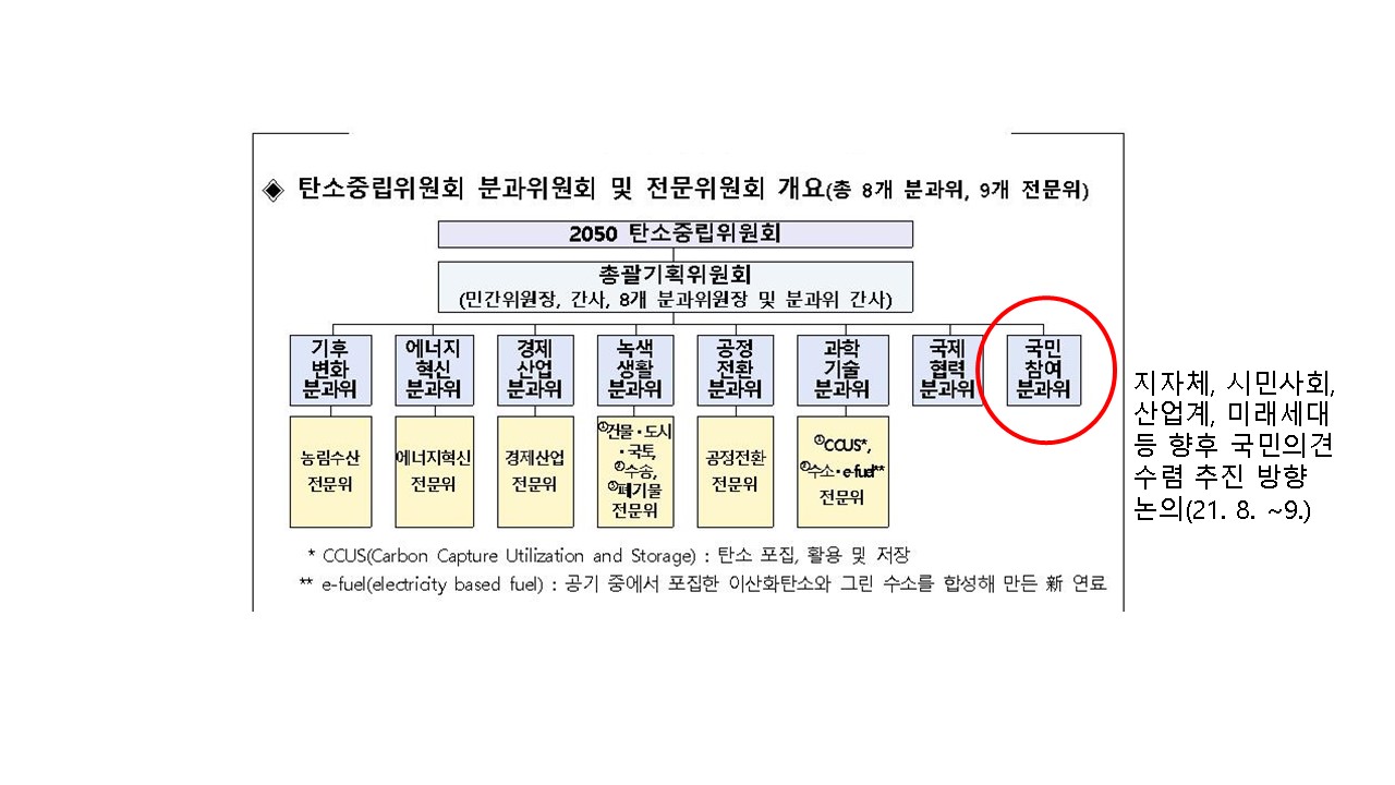 탄소중립위원회, 탄소중립 시나리오 초안 (21. 8. 5.) 설명 자료 작성자: yurilemon - 2021.08.31 로그인 또는 회원등록 댓글을 쓰려면 219 views / 0 Comments *본 자료는 지난 8월 5일 탄소중립위원회가 발표한 탄소중립 시나리오 초안을 개괄적으로 볼 수 있도록 작성한 자료입니다. 첨부파일 업로드_탄소중립시나리오초안_대신 읽어드립니다_0.pdf