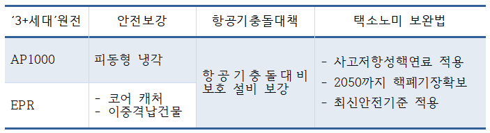 표 2. '3+세대' 원전의 유라톰조약 및 택소노미 보완법의 안전규제 강화추세