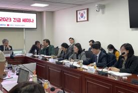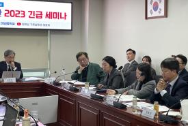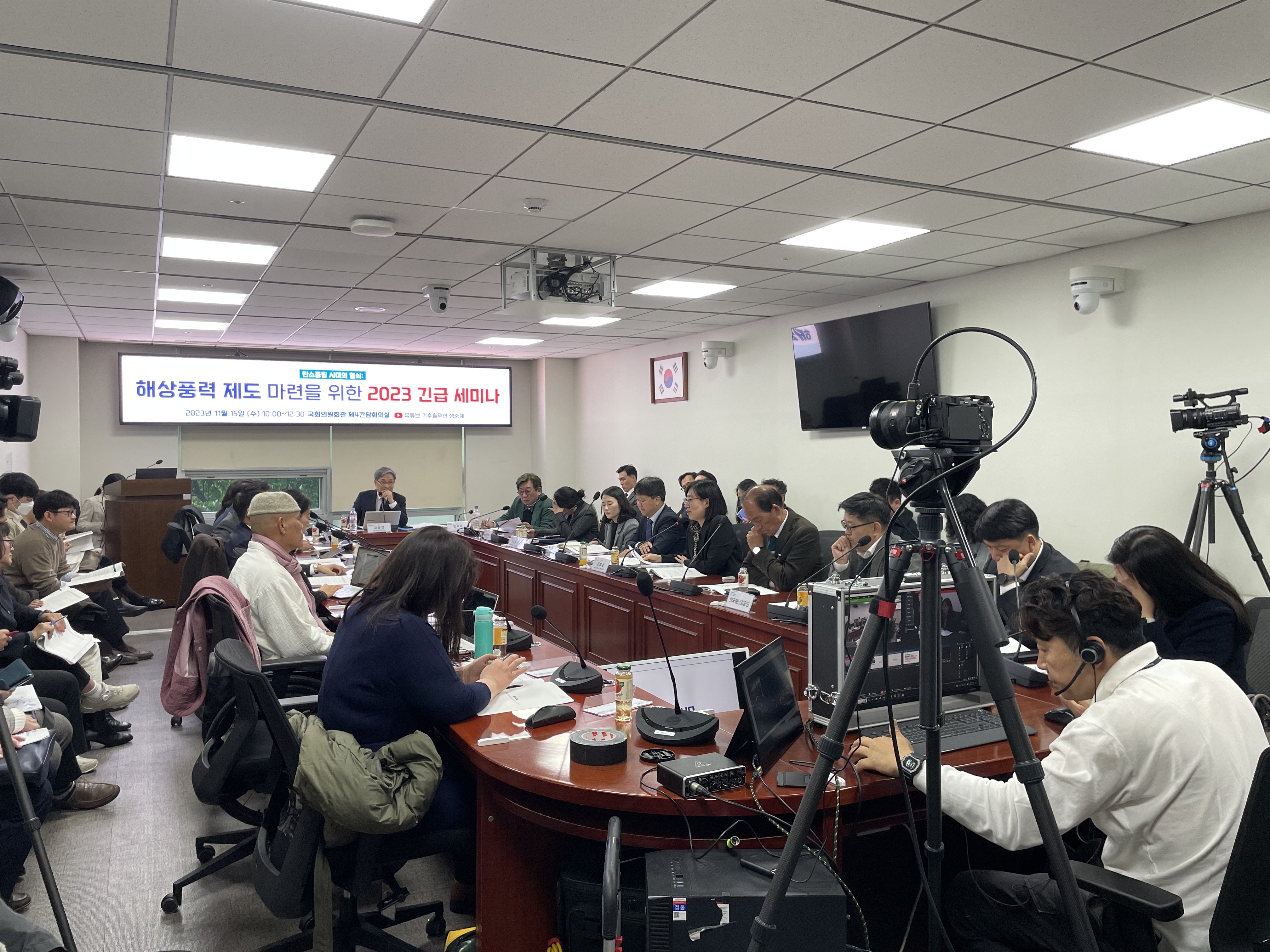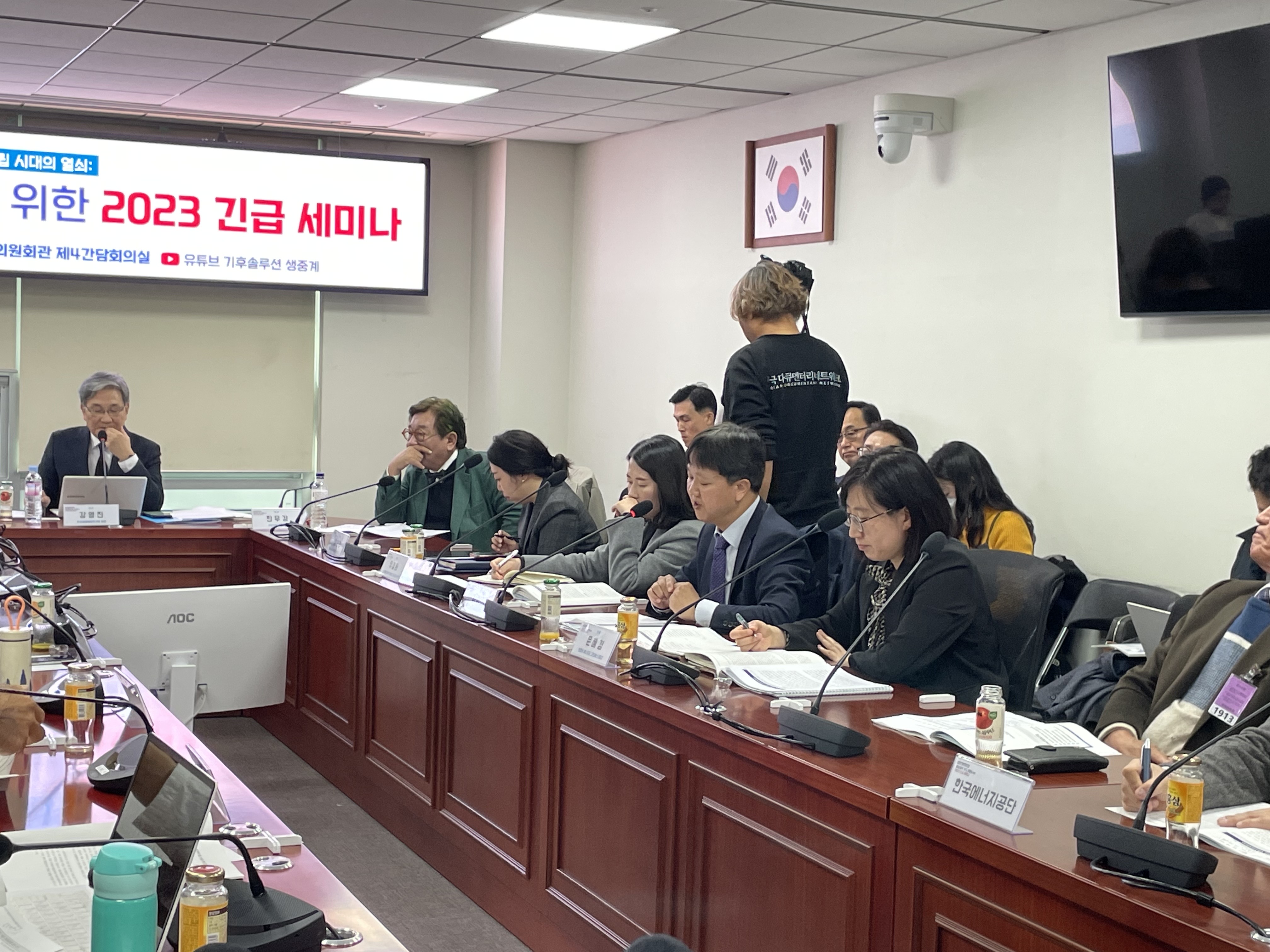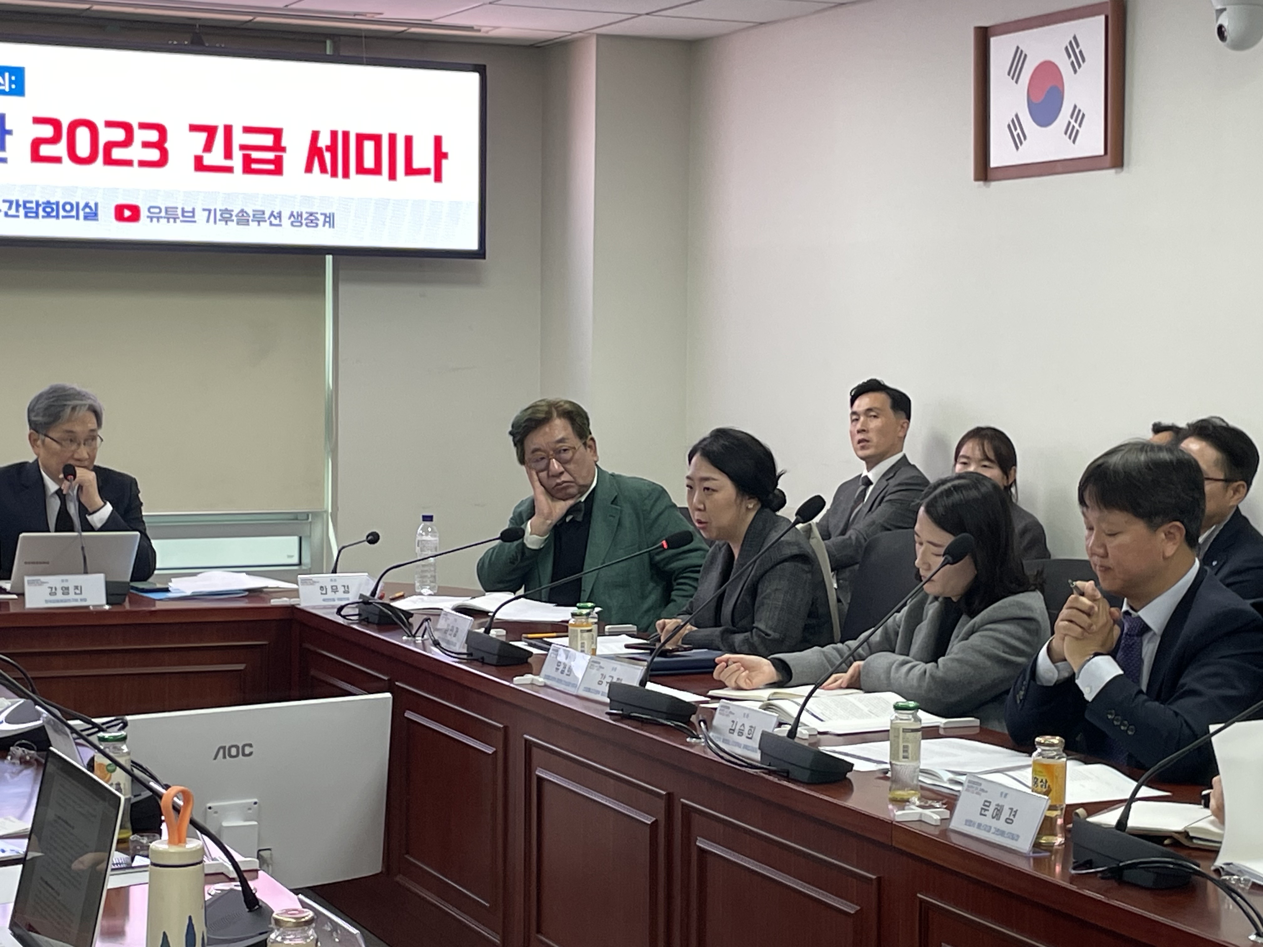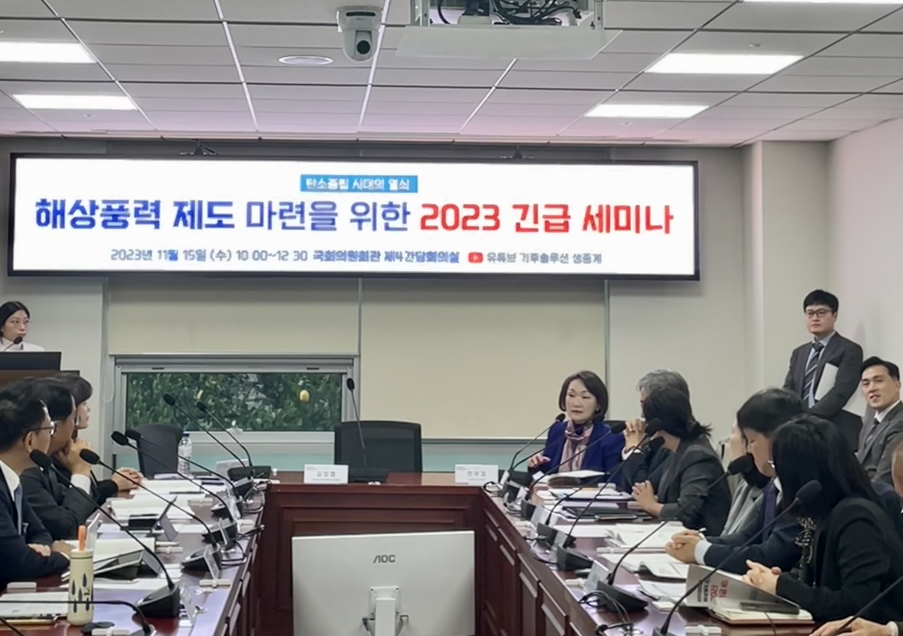 이해당사자들이 해상풍력 논의를 재개해 질서 있는 해상풍력 보급을 이루기 위한 국회 긴급 세미나가 열렸다. 15일 국회의원회관 제4간담회의실에서 김정호 의원(국회 기후위기특별위원장), 김한정 의원, 한무경 의원이 주관하고 기후솔루션, 에너지전환포럼, 환경운동연합, 기후위기대응 에너지전환 지방정부협의회가 주최하는 ‘해상풍력 제도 마련을 위한 2023 긴급 세미나’가 열렸다.