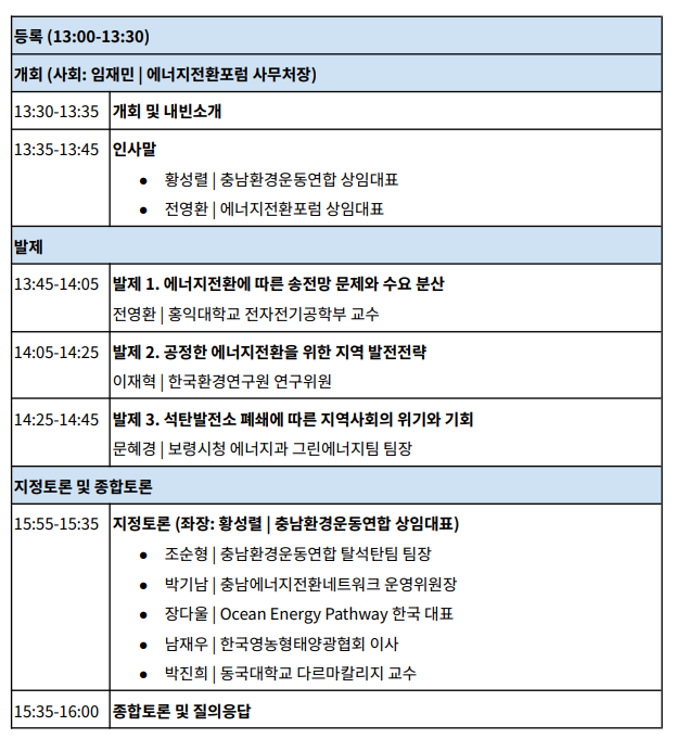 · 주최: 기후솔루션, 석탄을넘어서, 에너지전환포럼, 충남환경운동연합